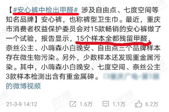 對(duì)于此次風(fēng)波,衛(wèi)生用品協(xié)會(huì)也出面為以上品牌“伸冤”,并給出了具體說(shuō)明,強(qiáng)而有力地回?fù)袅?ldquo;標(biāo)題黨”。