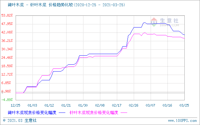據(jù)了解,自2020年6月開始,白卡紙就快速領(lǐng)漲,今年1月底和3月初,白卡紙價格再度起飛,漲幅驚人,這期間,文化用紙強(qiáng)勢跟漲。岳陽林紙股份有限公司副總經(jīng)理易蘭楷就曾表示,文化用紙從去年8月就進(jìn)入逐漸提漲階段。在此期間,生活用紙也多次提價,至3月底,已有多家生活用紙巨頭大部漲價函,于4月1日開始逐步漲價,漲幅平均為10%。