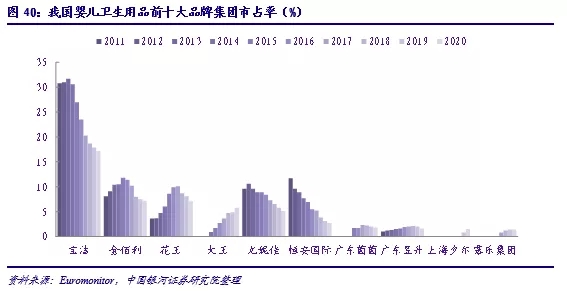 目前市場競爭格局的變化說明我國嬰兒衛(wèi)生用品市場尚未成熟,仍存在發(fā)展的較大空間,在消費(fèi)升級和市場體量擴(kuò)張下外資企業(yè)和國內(nèi)新銳企業(yè)都有規(guī)模增長、擴(kuò)張市場份額的機(jī)會。短期內(nèi)我國嬰兒衛(wèi)生用品市場的行業(yè)集中度可能不會快速回升,新銳品牌的加入推動了產(chǎn)品升級也給行業(yè)帶來了活力和更多競爭,國產(chǎn)品牌具有本土化的電商營銷能力與新渠道把控力,以及適應(yīng)性更強(qiáng)的新品迭代能力,因此和外資品牌的拉鋸戰(zhàn)可能會持續(xù)進(jìn)行。長期來看,參考女性衛(wèi)生用品市場的發(fā)展路徑,市場成熟后外資品牌的品牌效應(yīng)會逐步顯現(xiàn),未能成功樹立品牌影響力的國產(chǎn)新銳品牌或?qū)⒅鸩酵顺鍪袌觯袠I(yè)屆時將再次向龍頭集中聚攏。